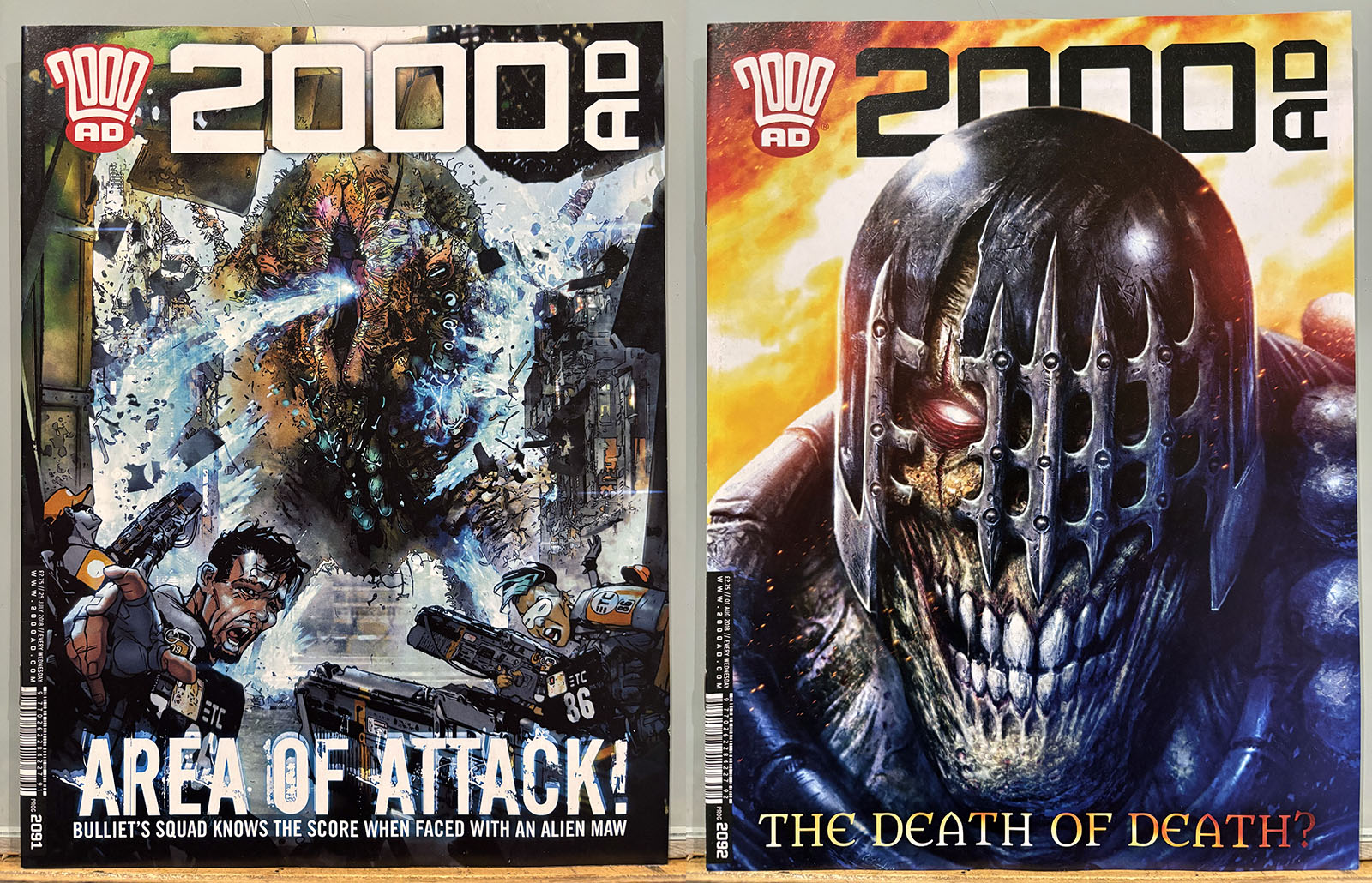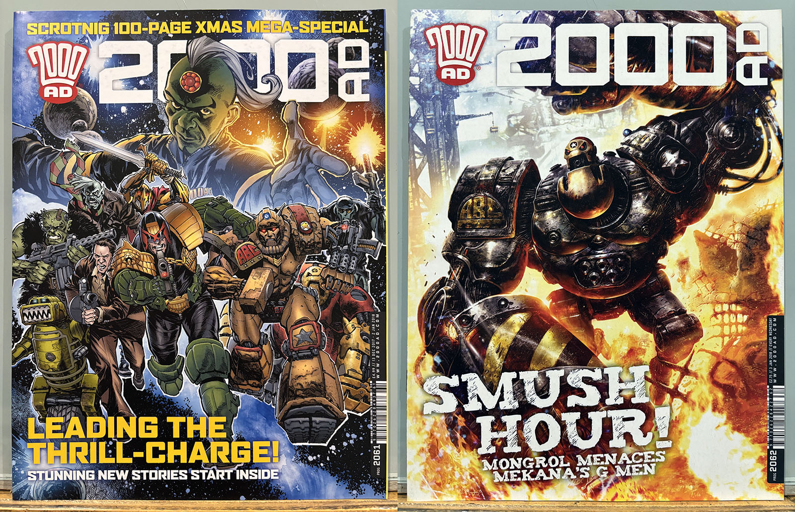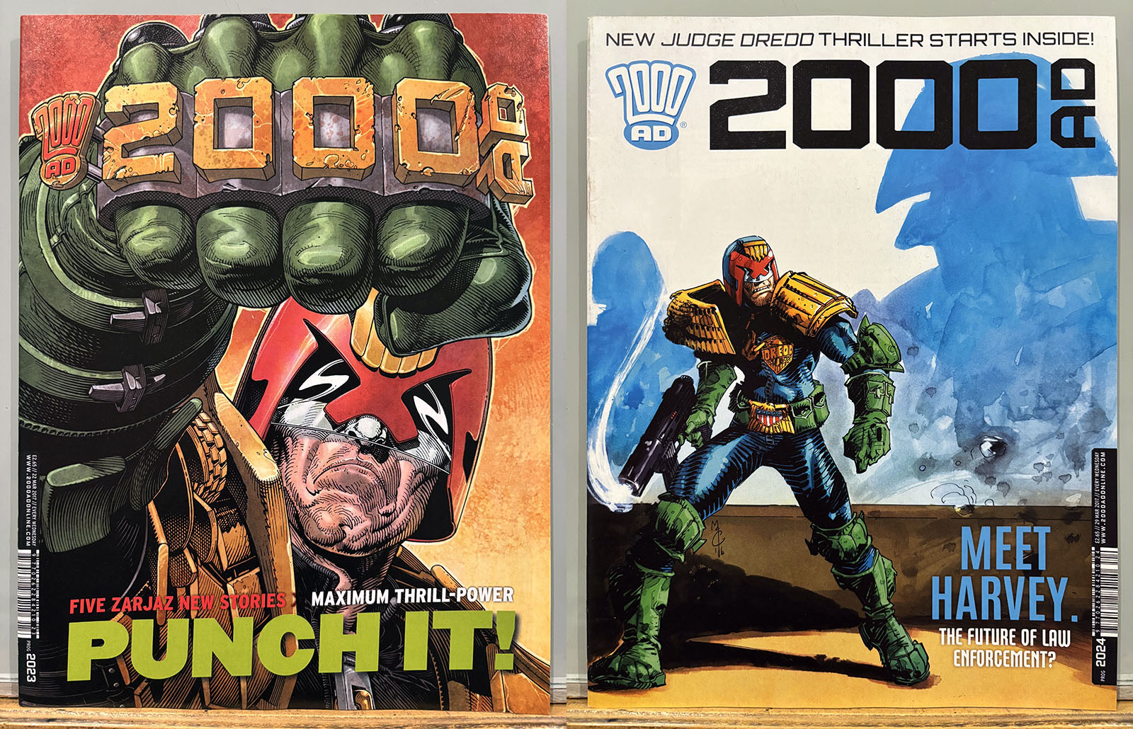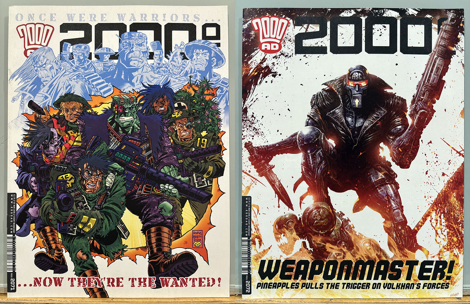 The Galaxy’s Greatest Comic reached its 40th anniversary in this stretch, commemorated by a special birthday issue that brought back some very early strips and did a lot of 4th-wall breaking. Tharg’s 3rillers was an expanded version of the one-and-done Future Shocks that often served as a launch pad for new characters and talent, but now each story lasted for three issues. The cover price rose only 10p, from £2.65 to £2.75 with occasional bumps for special issues.