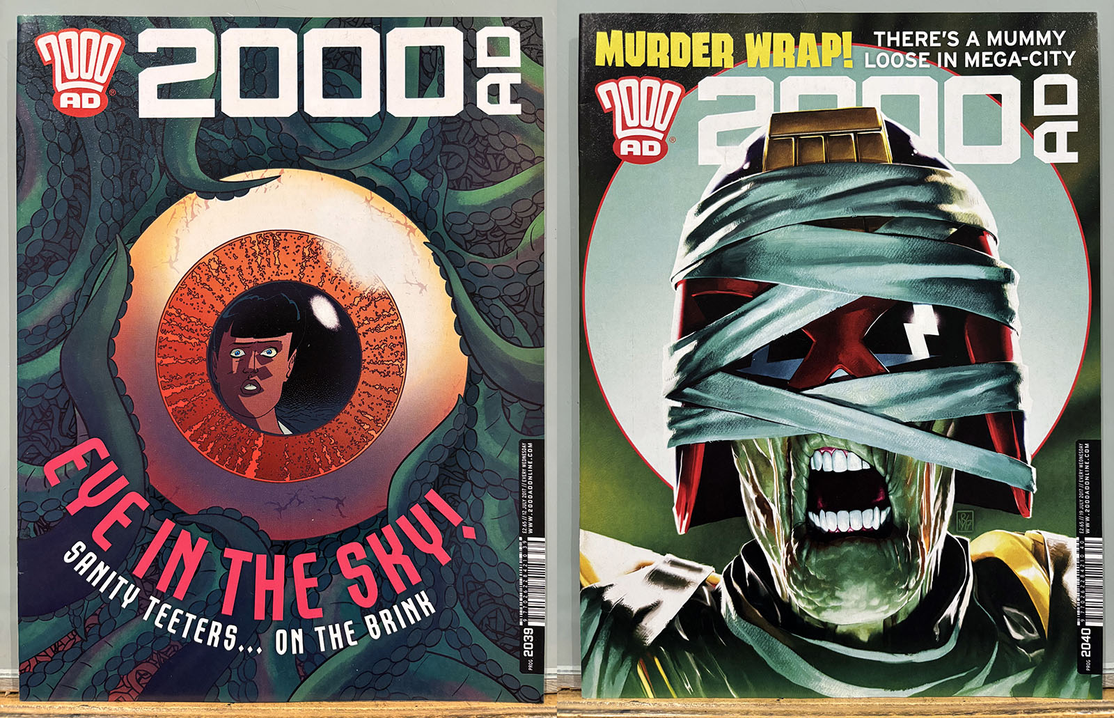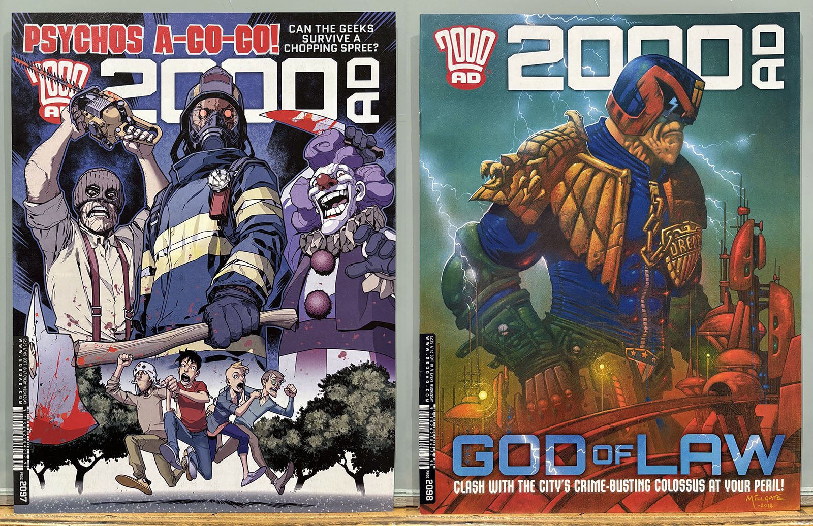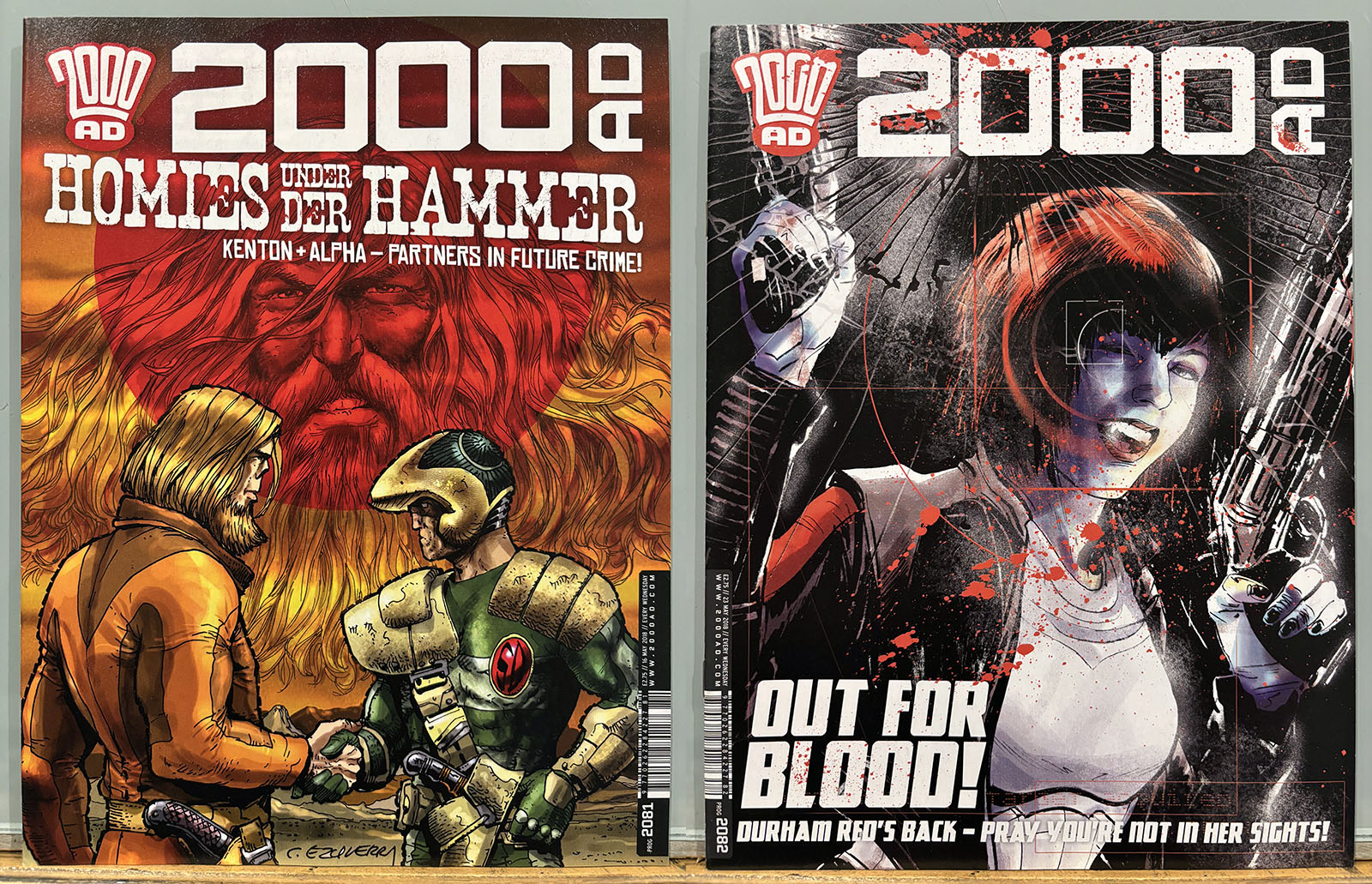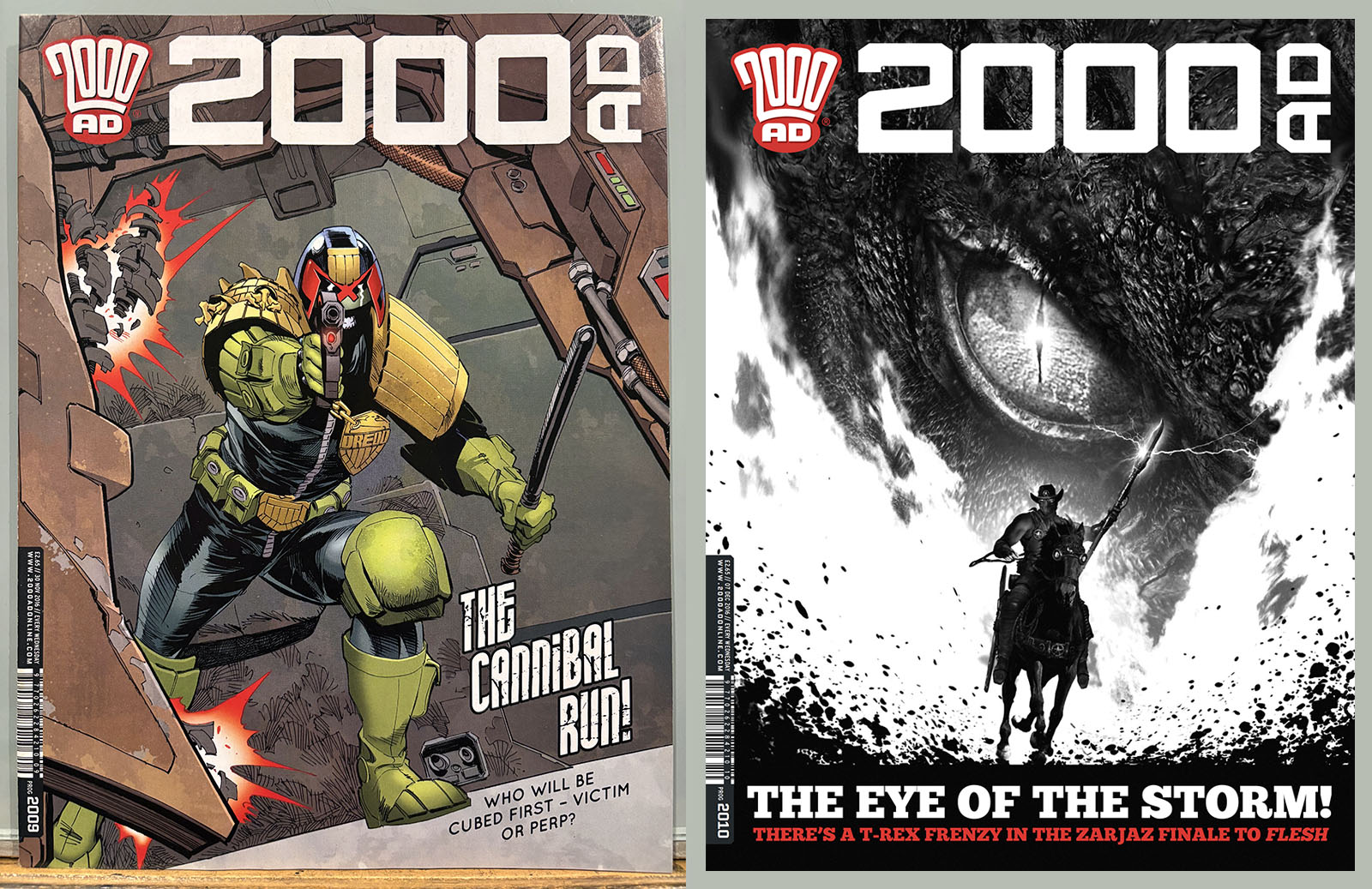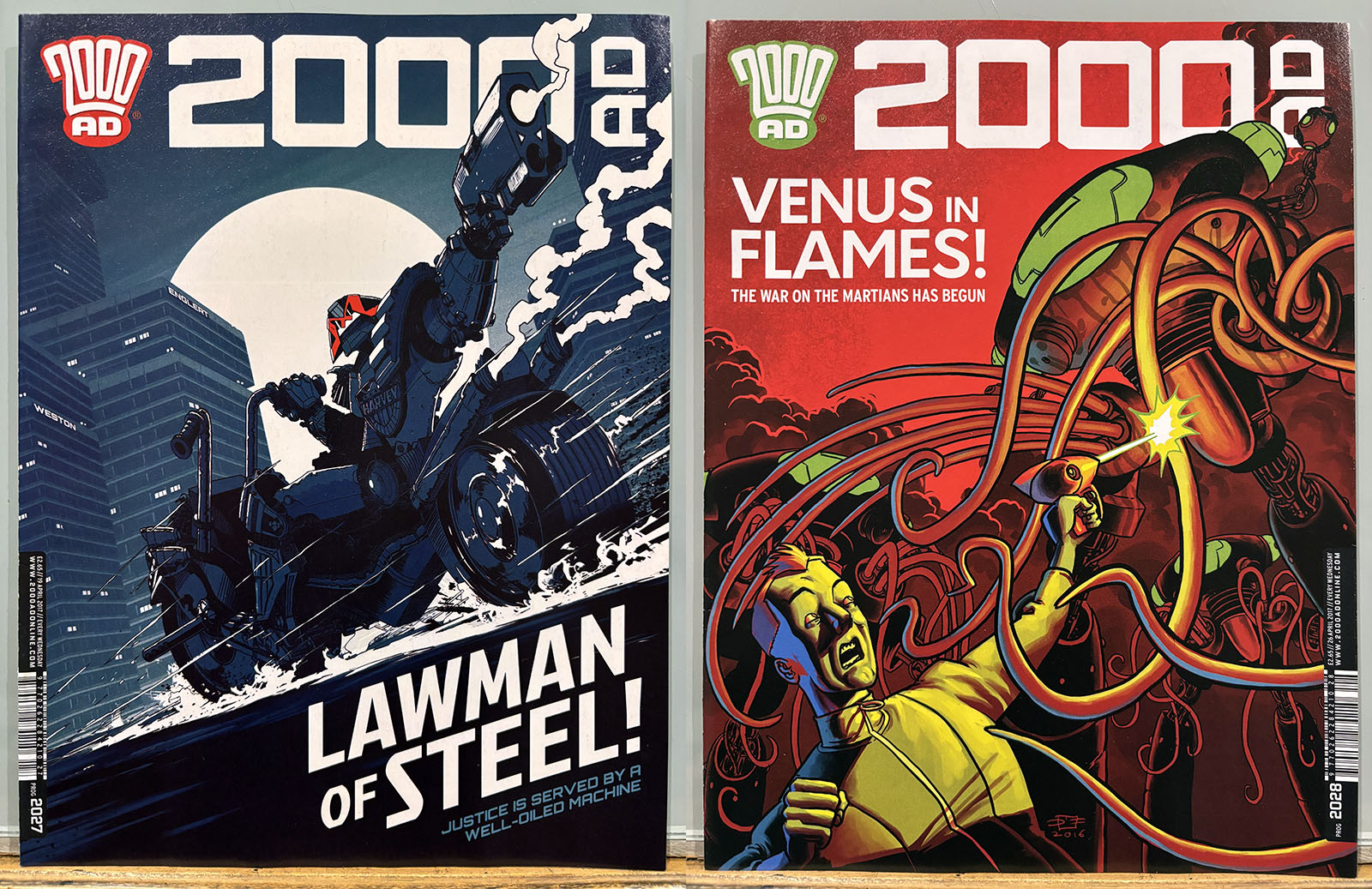 The Galaxy’s Greatest Comic reached its 40th anniversary in this stretch, commemorated by a special birthday issue that brought back some very early strips and did a lot of 4th-wall breaking. Tharg’s 3rillers was an expanded version of the one-and-done Future Shocks that often served as a launch pad for new characters and talent, but now each story lasted for three issues. The cover price rose only 10p, from £2.65 to £2.75 with occasional bumps for special issues.