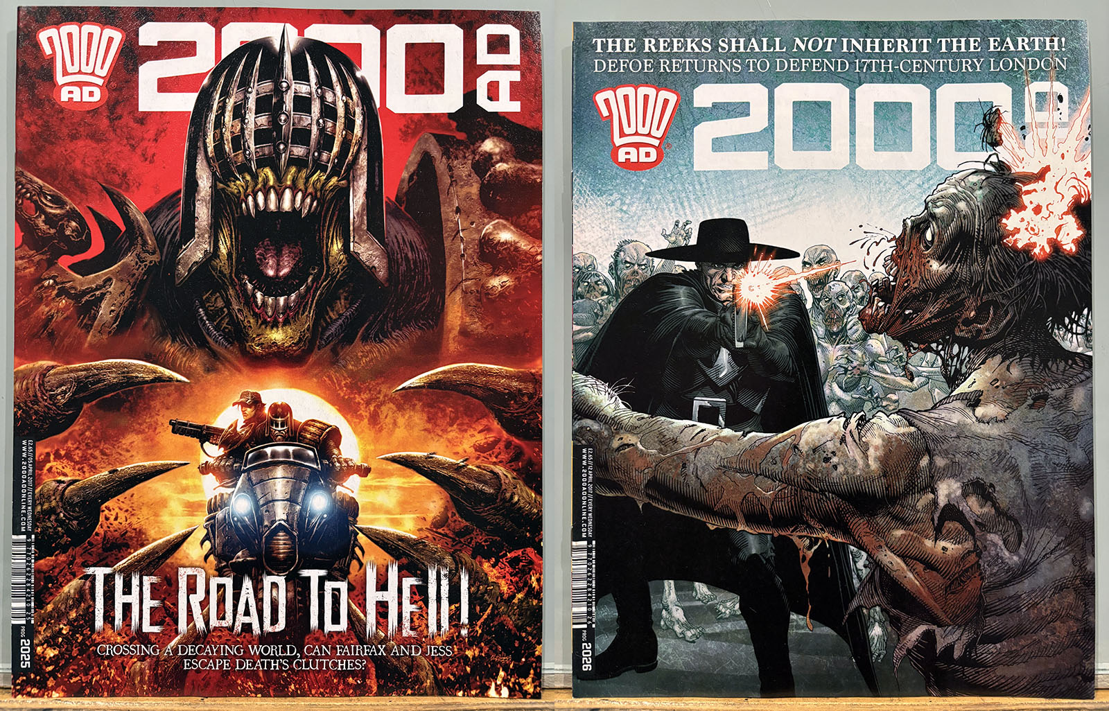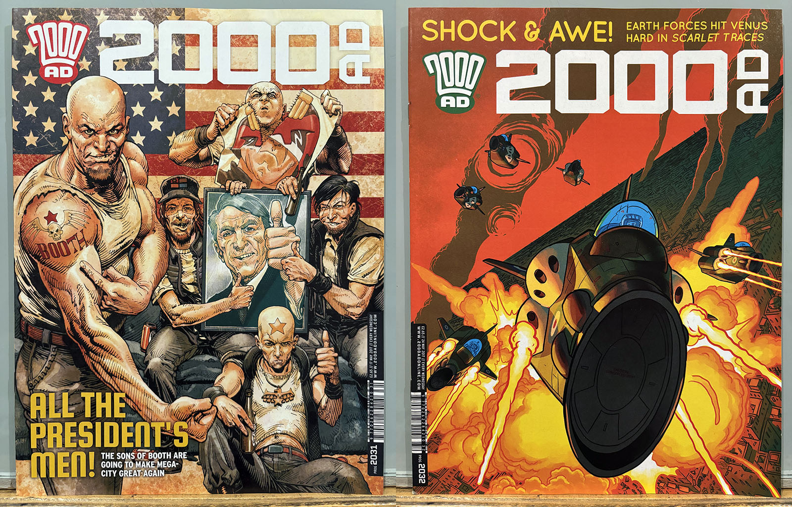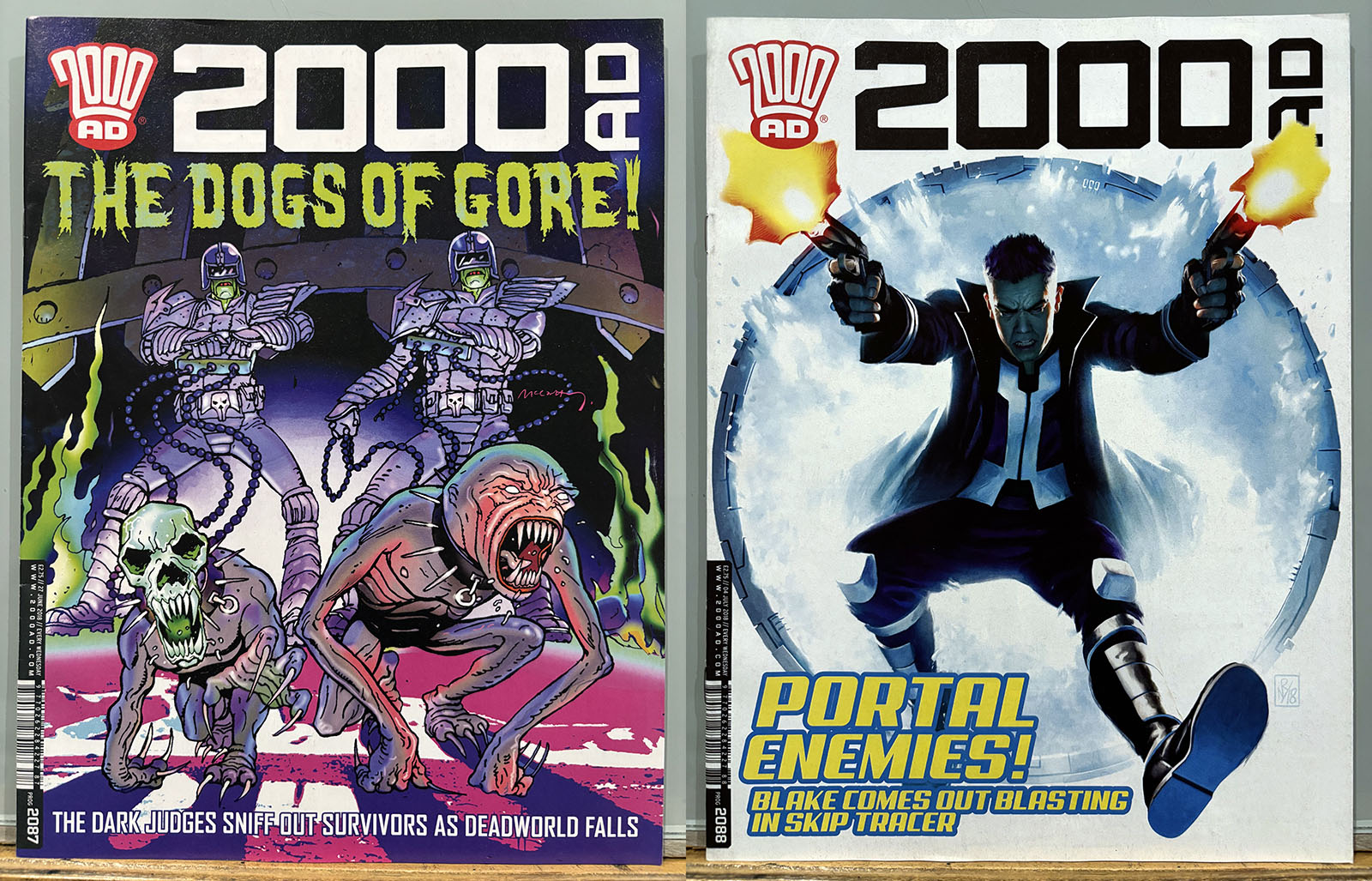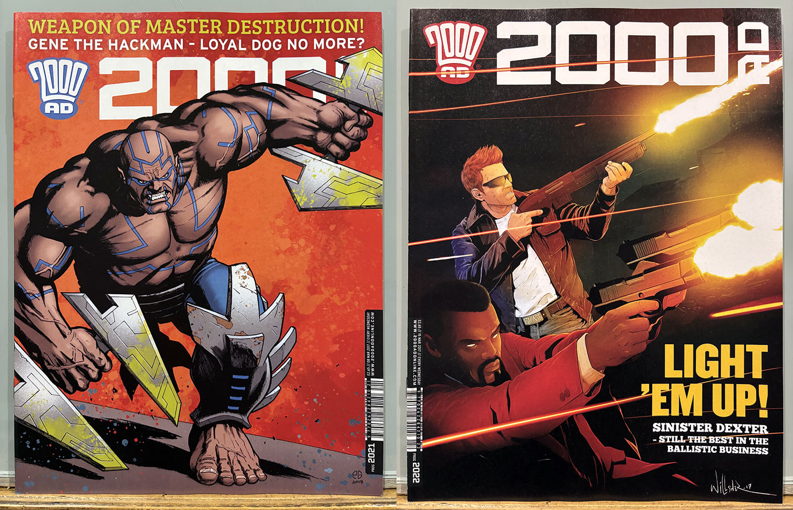 The Galaxy’s Greatest Comic reached its 40th anniversary in this stretch, commemorated by a special birthday issue that brought back some very early strips and did a lot of 4th-wall breaking. Tharg’s 3rillers was an expanded version of the one-and-done Future Shocks that often served as a launch pad for new characters and talent, but now each story lasted for three issues. The cover price rose only 10p, from £2.65 to £2.75 with occasional bumps for special issues.