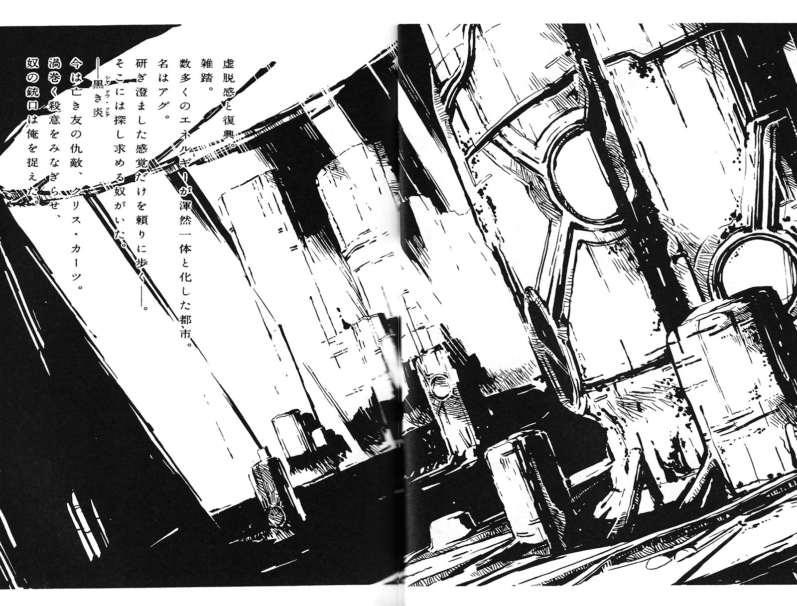 Dark, stagnant, and oppressively heavy air—the Astragius Galaxy, where the word “decadence” fits the cityscape perfectly. The Hundred Years’ War that split it in two ended in an indecisive ceasefire.