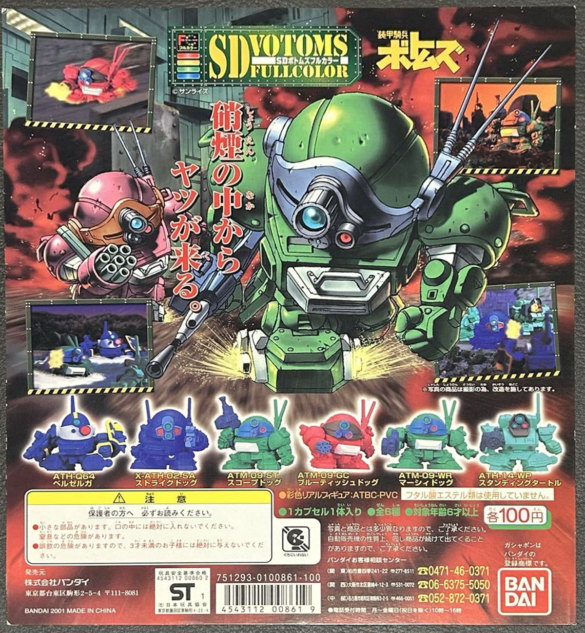 Takara’s “Choro Q” toy line was where it all began in 1983/84. They made a little Scopedog that could go into “downform” and zip around via a friction motor.