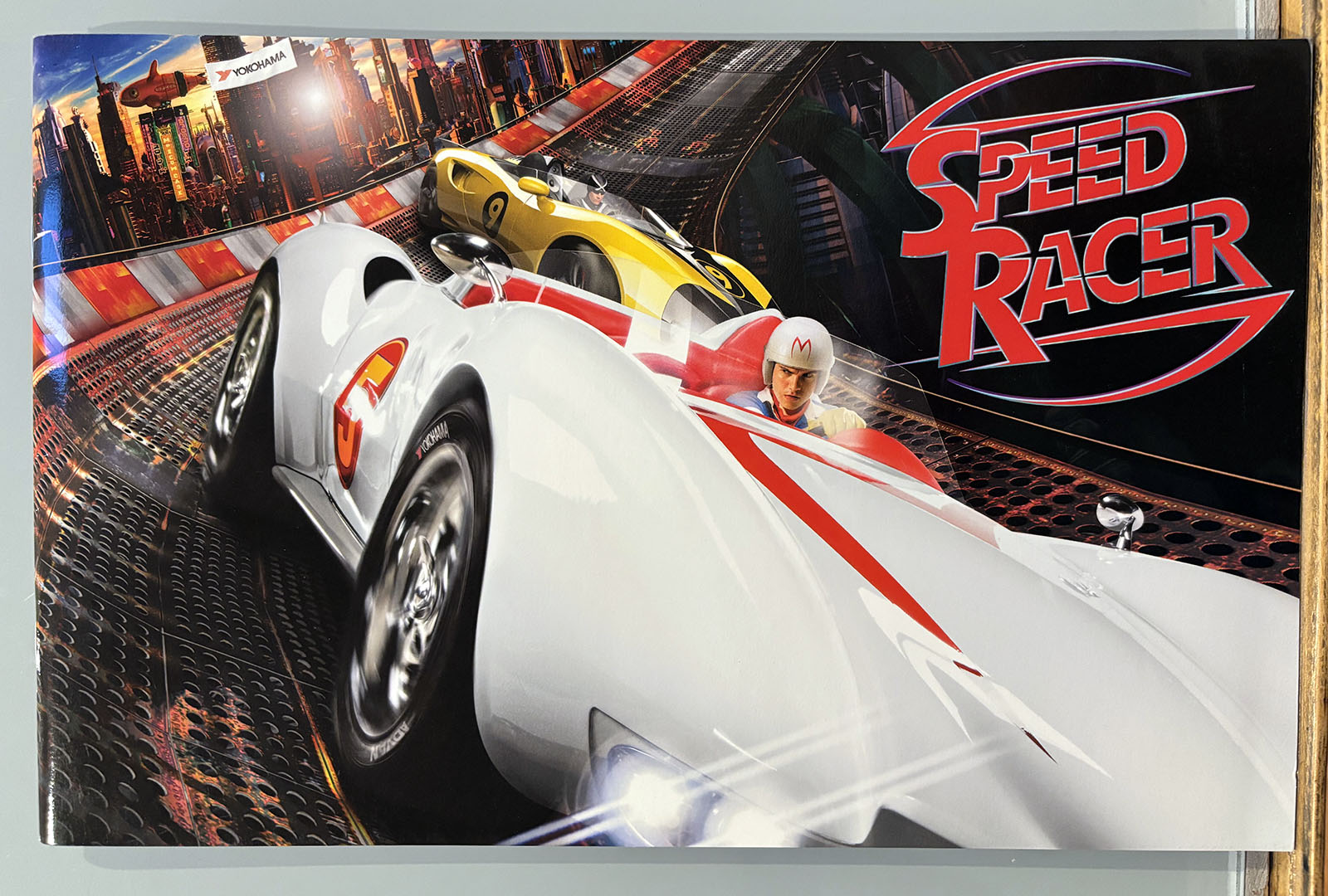 In a delightful bit of reverse imporation, the live-action Speed Racer movie opened in Japan roughly the same time it did in the west, and got the same treatment as any other film with a lavish program book and various products sold in movie theaters. This one is a real doozy, pumped up with the same dynamic colors and graphics seen throughout the film (which, as far as I’m concerned, got everything right).