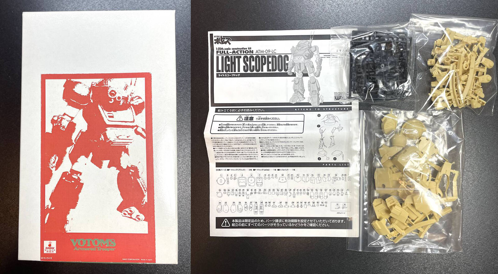 Yamazaki: We weren’t negotiating directly, but we decided to sell the injection parts as a stand-alone product with the direction of, “Let’s make it a kit anyway.” It seems that they decided to make it a full kit after talking to Takara. It’s a good thing that it happened, but at that time Takara’s 1/24 Scopedog was about to be reissued at a price of 2,000 yen. And the price of the kit with the modification parts would be 12,800 yen. No one would buy it then. (Laughs) The form was changed to injection and the material was changed to plastic, but its position as a garage kit did not change.